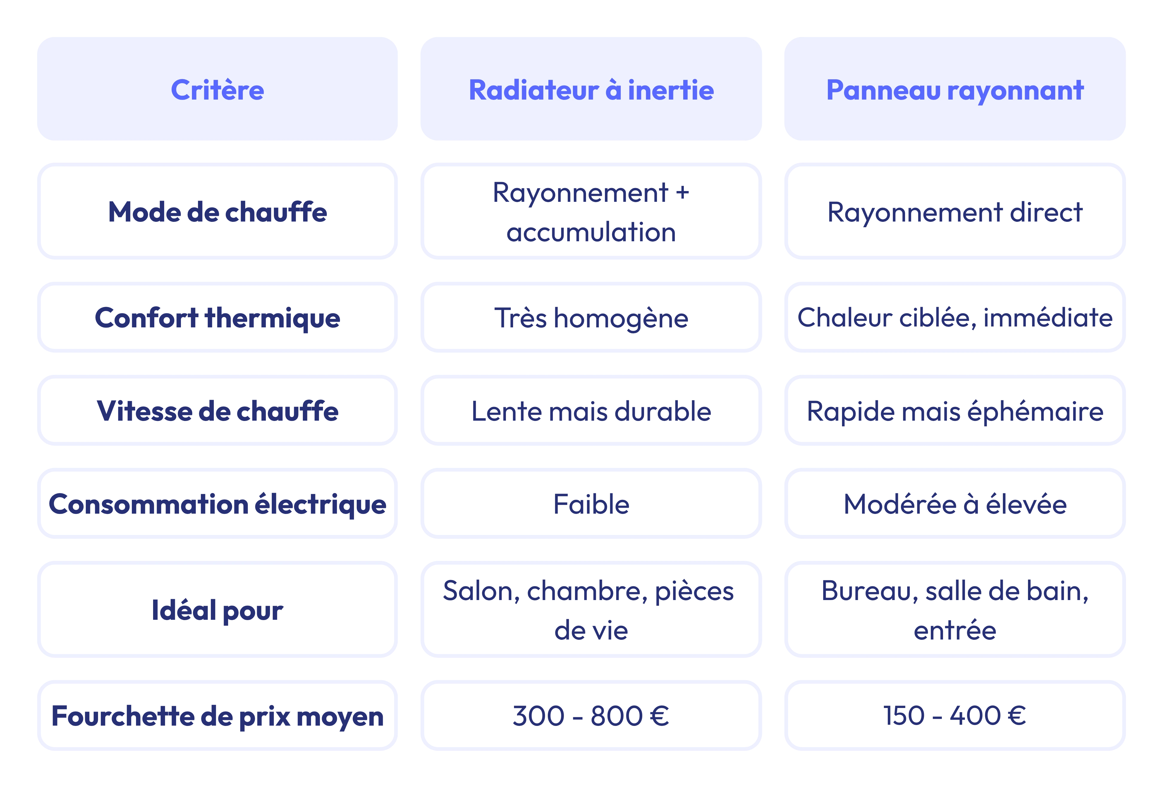 - Montée en température plus lente : idéal pour les pièces de vie, moins pour les passages rapides.
